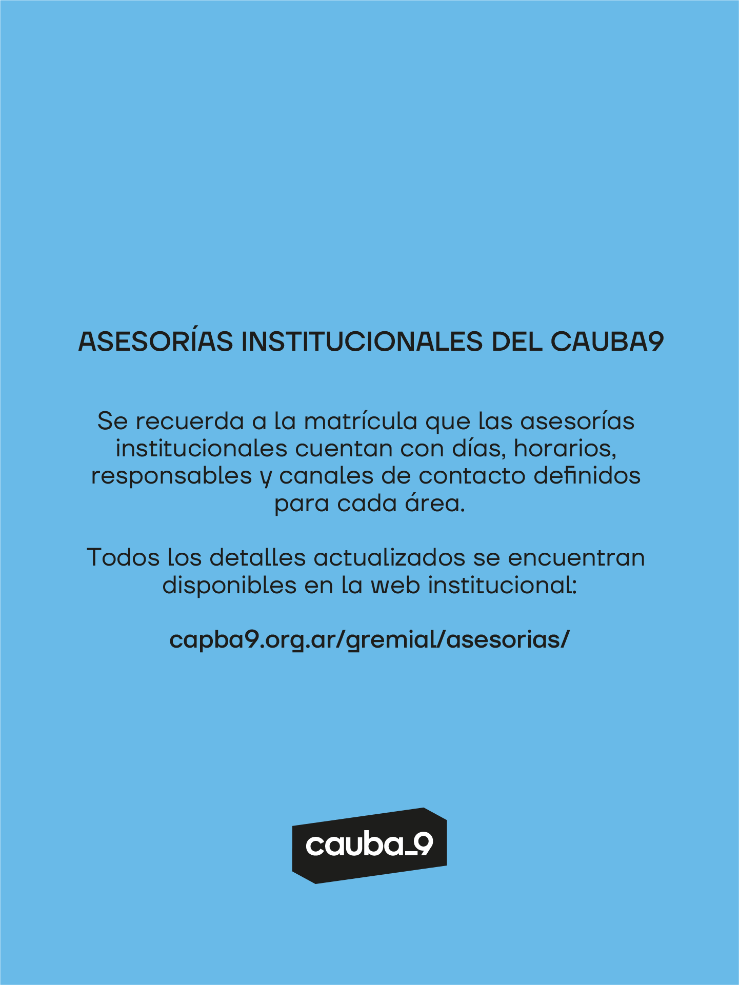 Todos los detalles actualizados se encuentran disponibles en la web institucional: https://cauba9.org.ar/gremial/asesorias/