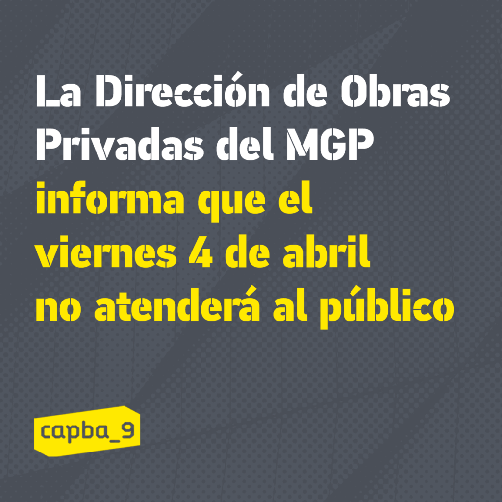 La Dirección de Obras Privadas del MGP informa que el viernes 4 de abril no atenderá al público