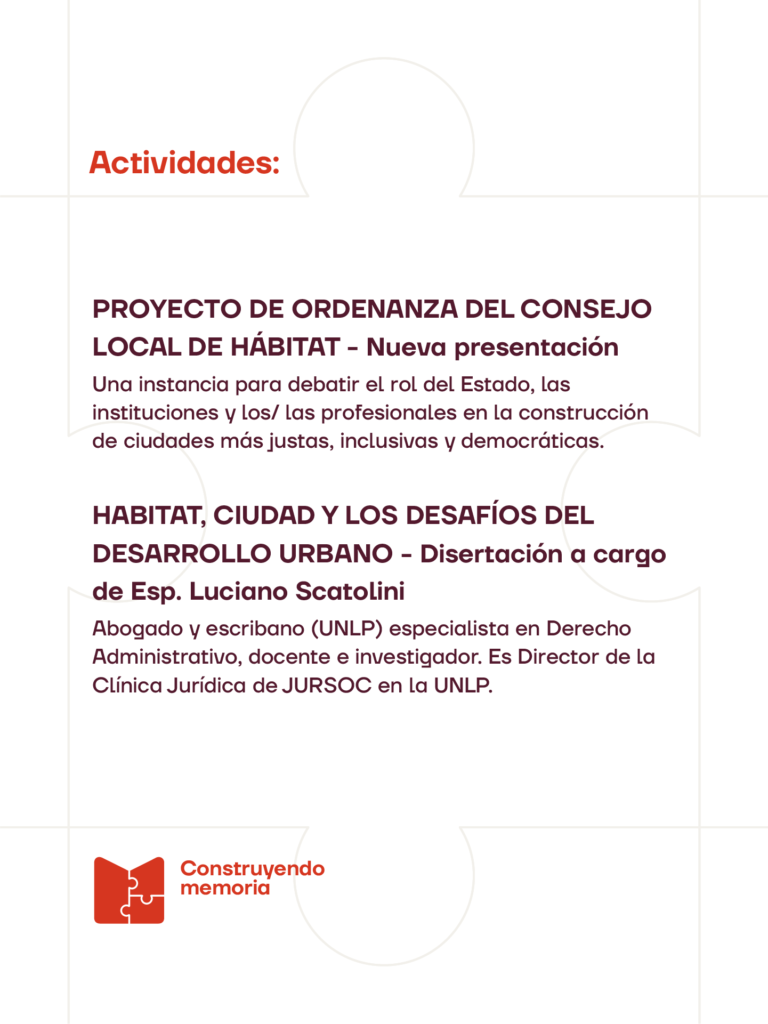 La actividad será abierta a toda la comunidad y forma parte de las acciones institucionales orientadas a promover el debate público sobre el hábitat, la planificación urbana y el rol de las instituciones.