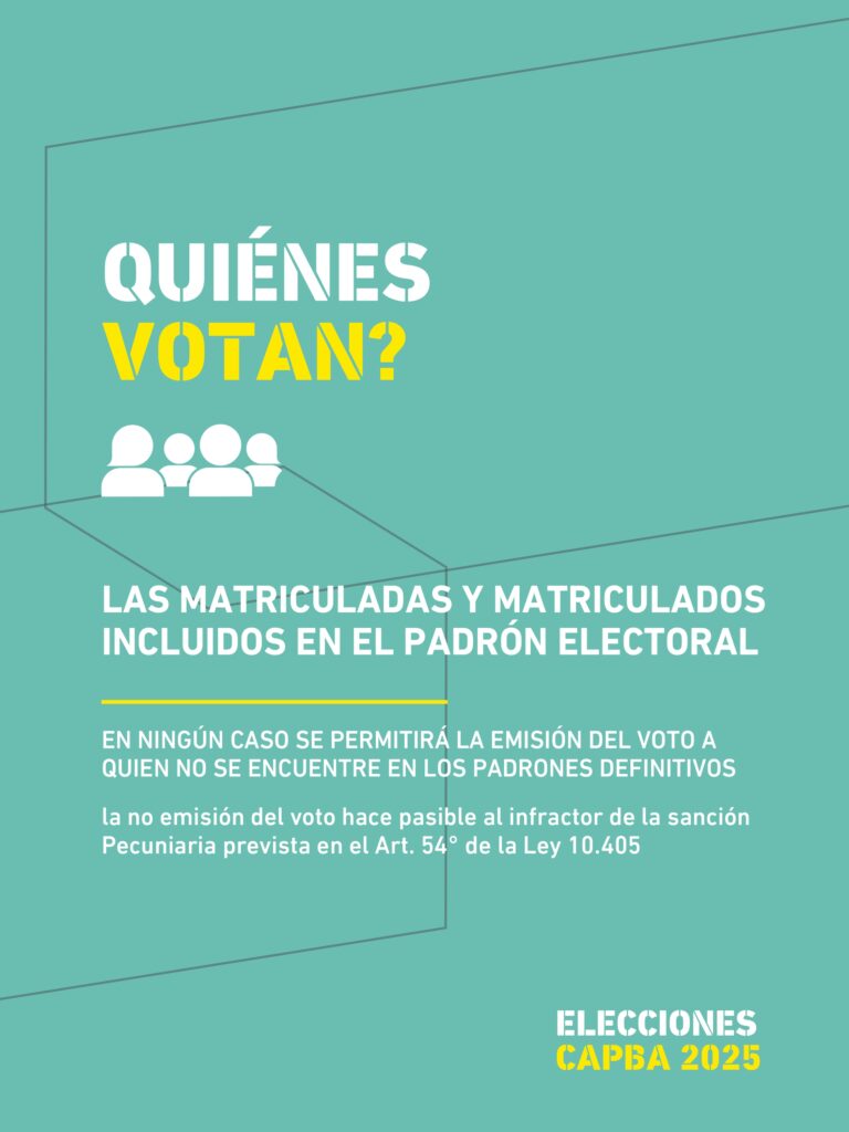 Podrán votar las y los matriculados que, al 13 de agosto de 2025, cumplan con los requisitos establecidos en la Ley 10.405 y en los artículos 4º y 5º del Reglamento Electoral.