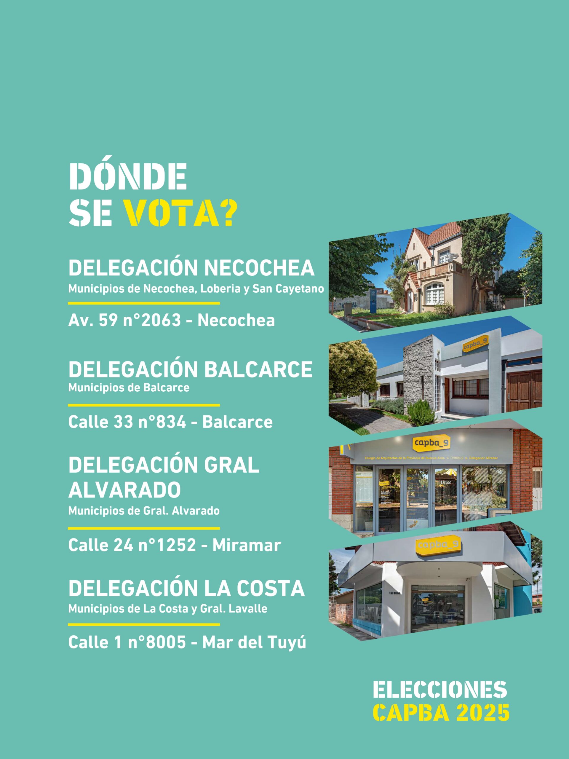 Podrán emitir su voto en las siguientes sedes del CAPBA Distrito 9: