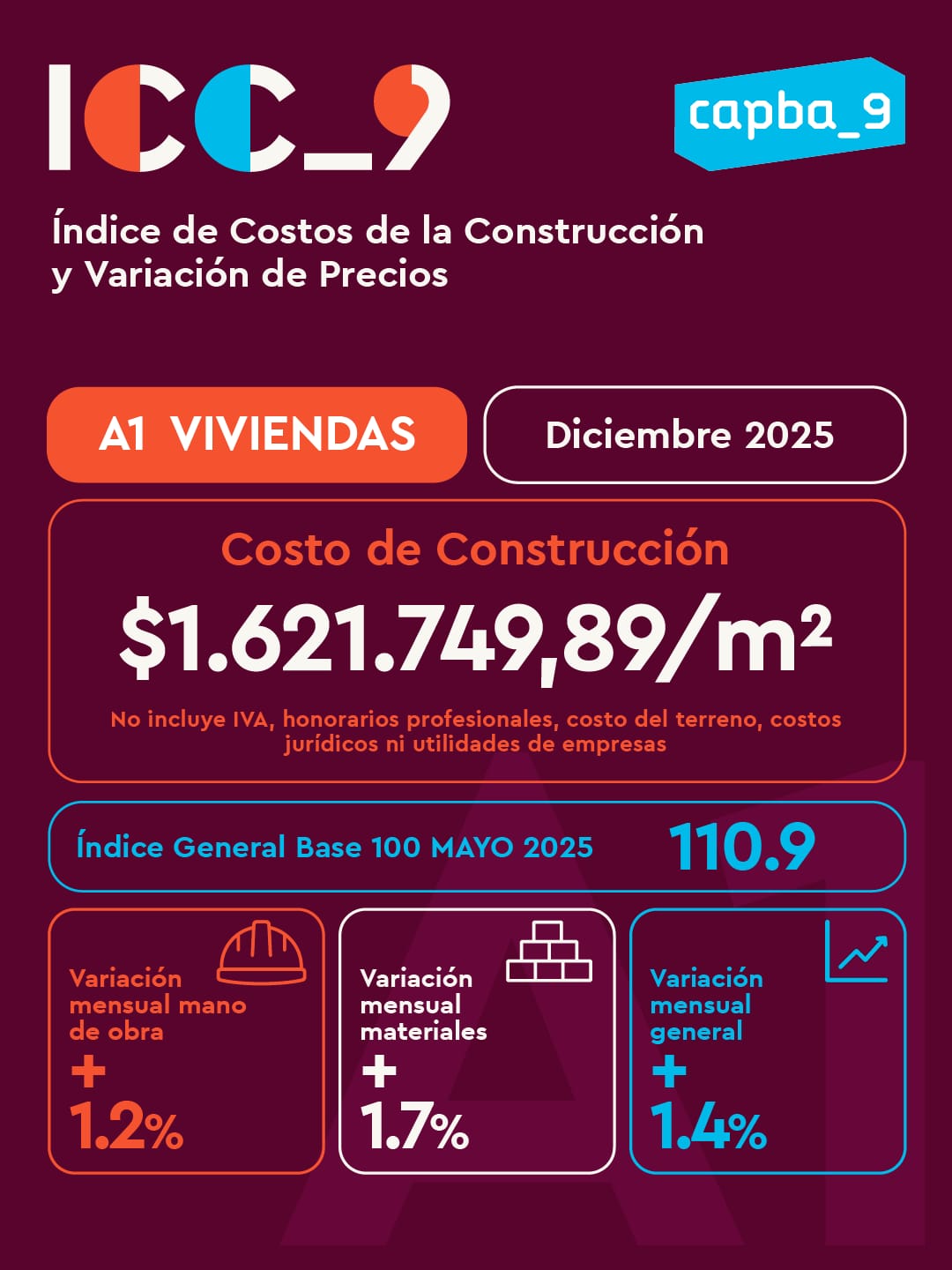 El Índice del Costo de la Construcción y Variación de Precios (ICC_9) correspondiente a Diciembre de 2025 registró una suba del 1,4 % respecto al mes anterior, en el sector de VIVIENDAS 🏘️