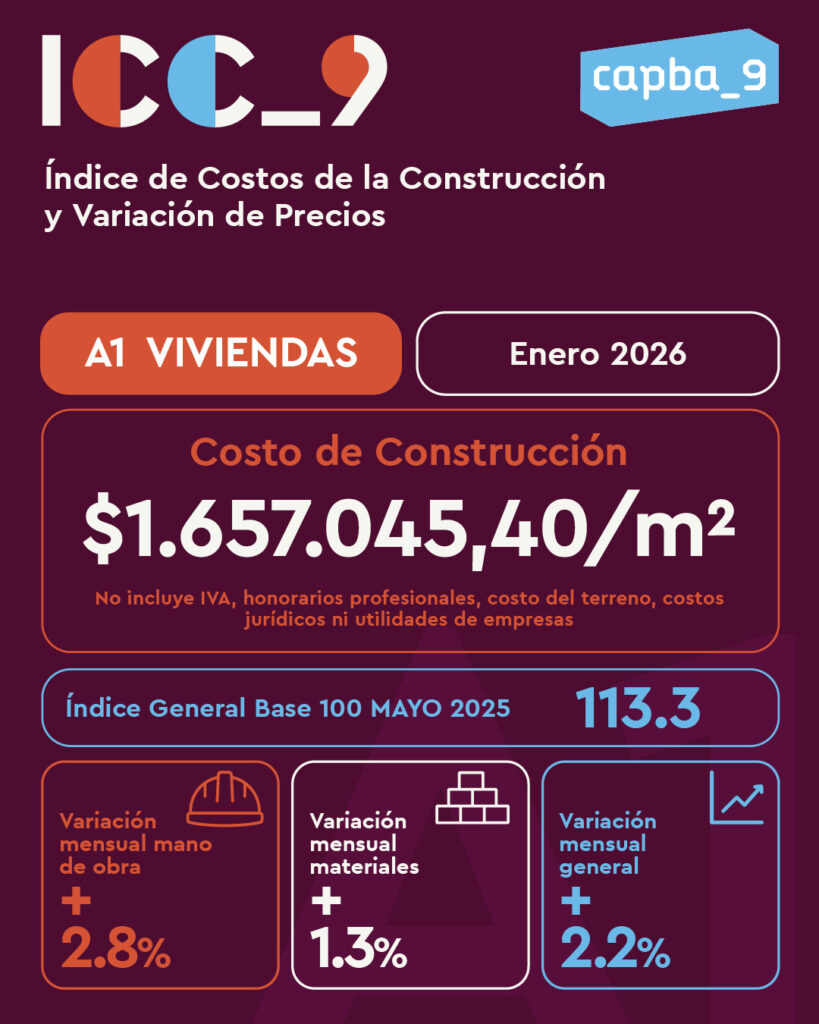 El ICC9 es una herramienta técnica inédita, desarrollada por el CAPBA Distrito IX, que refleja los costos de construcción y las variaciones del mercado en nuestra región.