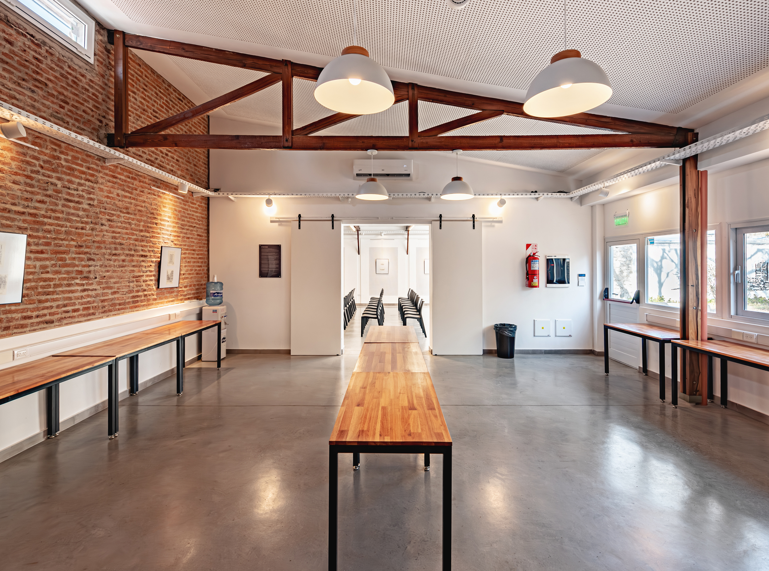 La edificación, que era el antiguo taller de carpintería de su padre, fue completamente remodelada y habilitada para el nuevo uso. Inaugurada el Día del Arquitecto 2022, consta de dos salones (120 m2 y 53 m2) que permiten un funcionamiento vinculado o independiente, batería de baños y sanitario accesible, office, sector de guardado, espacio exterior complementario, equipamiento de mesas, sillas, elementos de proyección y sonido, acondicionamiento acústico, aire acondicionado, wi-fi, alarma, asistencia médica, cobertura de los seguros correspondientes, entre otras comodidades y servicios.