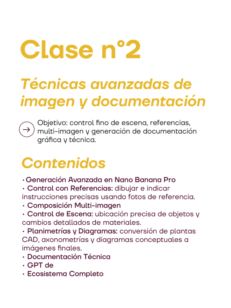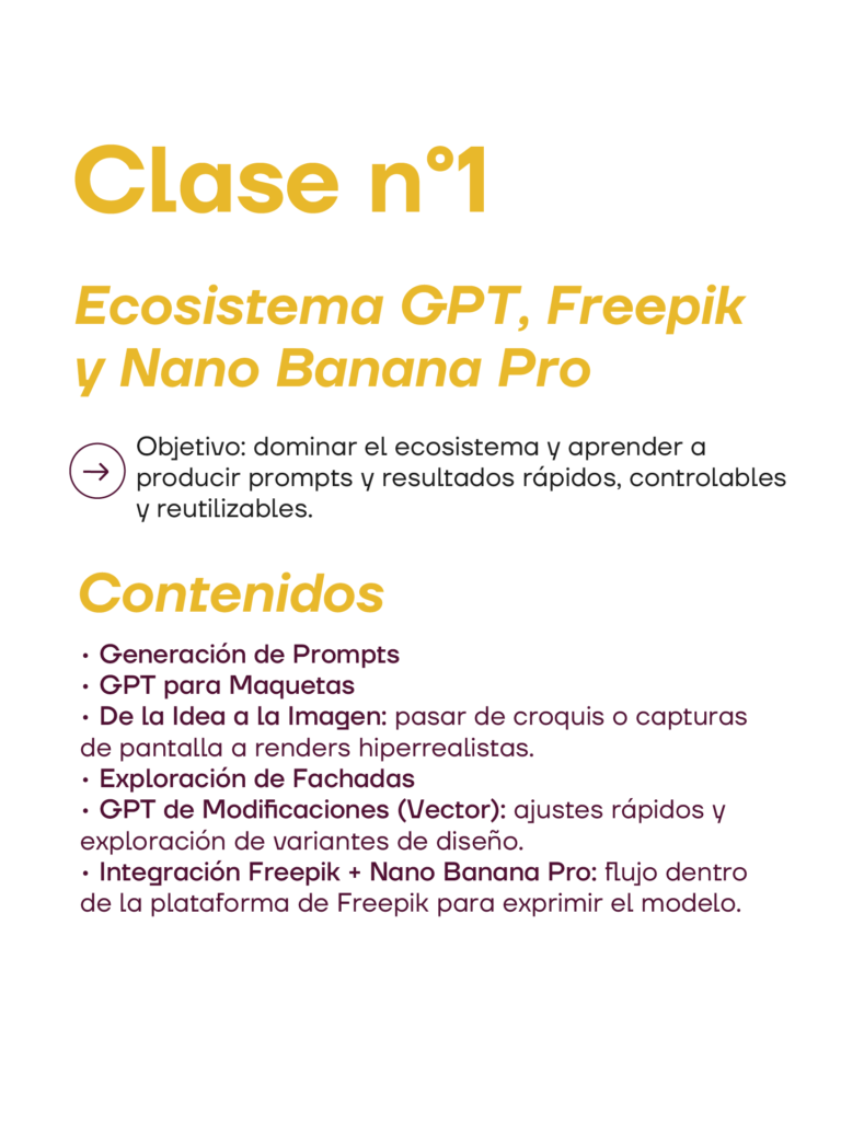 El curso estará a cargo del visualizador arquitectónico y docente Juan Cruz Prado, y propone un enfoque práctico basado en workflows reales, integrando plataformas como ChatGPT, Freepik, Nano Banana Pro y Kling, para pasar de la idea a la imagen, la documentación y la animación arquitectónica.